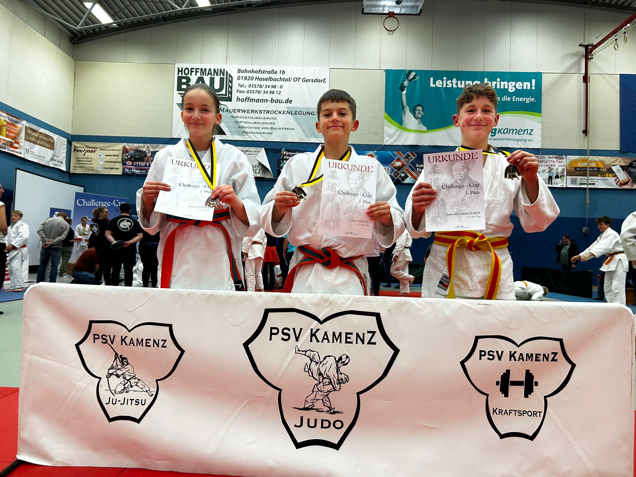 Am 15.11. fand der Challenge Cup beim PSV in Kamenz statt. Wir nahmen mit drei Kämpfern daran teil und Selma , Julius und Otto kehrten mit einer Goldmedaille nach Greiz zurück.